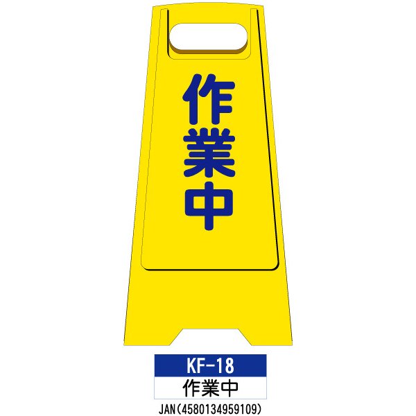 フロアスタンド 両面印刷 KF-18:作業中 1枚 W300×H600mm 標識 樹脂スタンド看板 サインスタンド 作業中 立て看板 安全保安用品