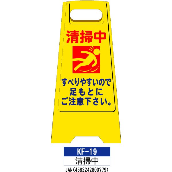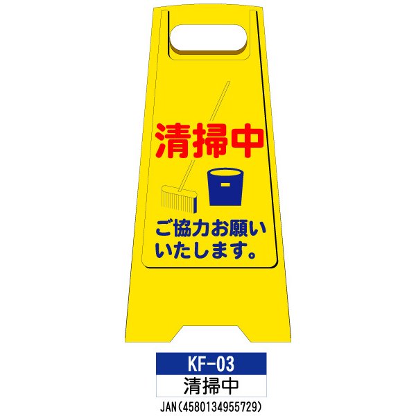 フロアスタンド 両面印刷 KF-03:清掃中 1枚 W300×H600mm A型スタンド 軽い 持ち運び 標識 樹脂スタンド看板 サインスタンド 作業中 立て看板 清掃中 足元注意