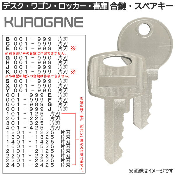 KUROGANE(クロガネ) 合鍵 スペアキー【ロッカー・デスク・ワゴン・キャビネット・袖机・脇机・書庫・保管庫 用】鍵 カギ 合カギ 合鍵作製 合カギ作製 合鍵作成 合カギ作成