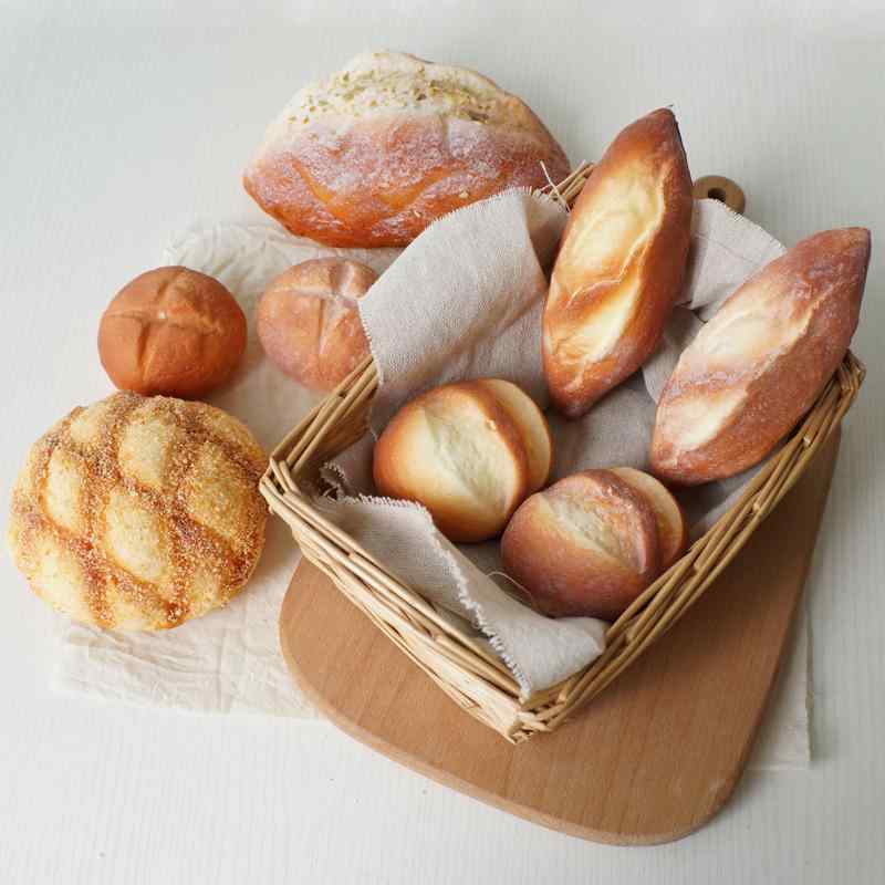 食品サンプル 見本 パン ロング バゲット 全粒紛 小麦 フェイク フード ベーグル フランスパン 撮影 装飾 小道具 美味しそう 偽物 デニッシュ リアル パン屋さん ごっこ