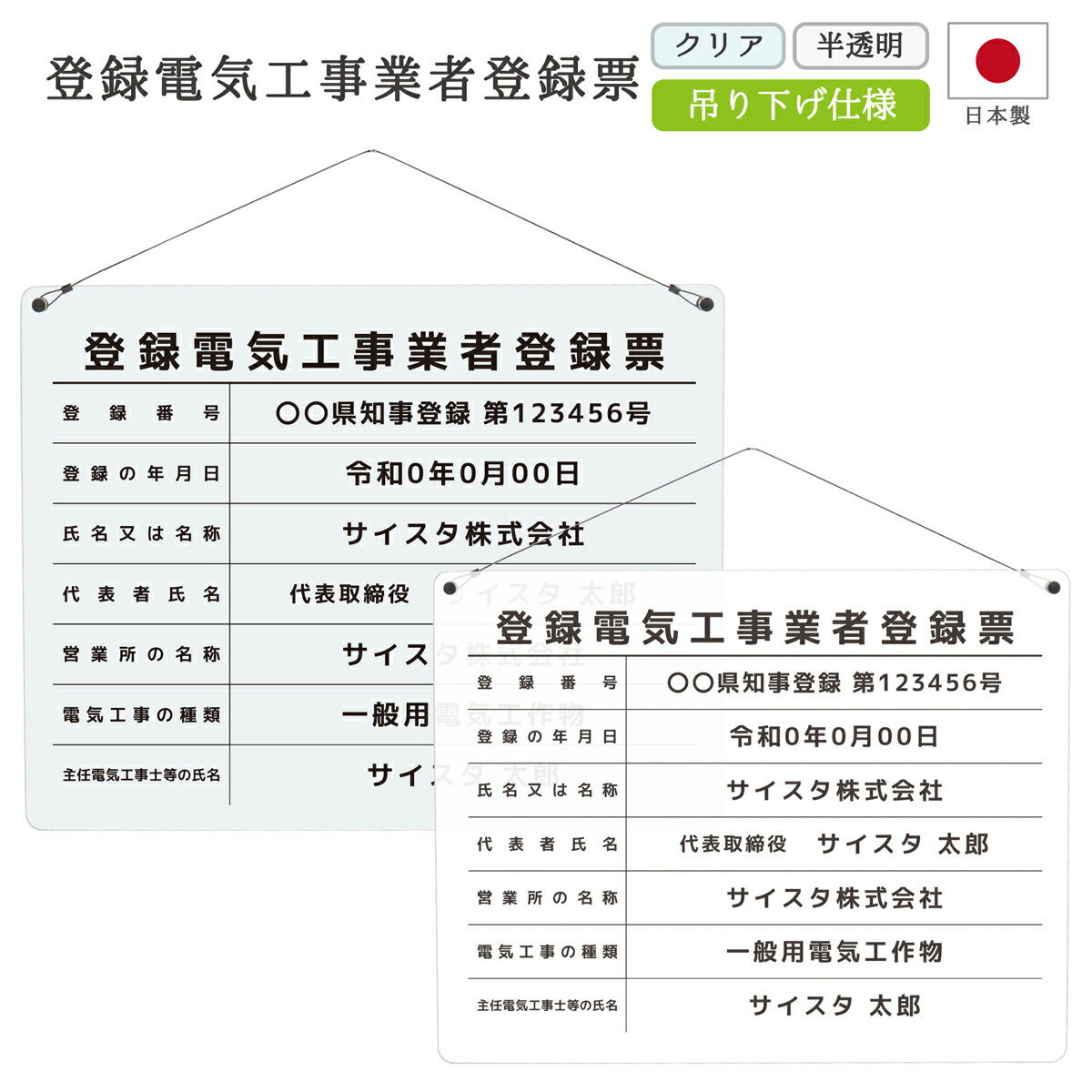 登録電気工事業者登録票 看板 制作 オーダー 店舗用 プレート パネル 電気工事 登録電気工事登録 電気工事業 登録電気工事業者 製作 クリア 半透明 | 登録電気工事業者登録票 吊り下げタイプ デザイン:B003_枠なしデザイン(透明 / 半透明)450mm 350mm 3mm
