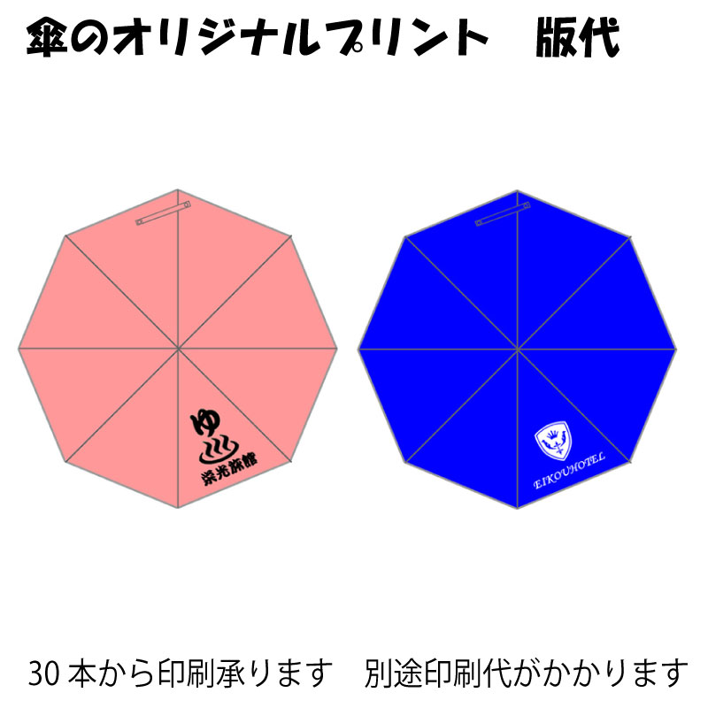 別途印刷代がかかります。 傘は別途当店の傘をご注文いただきます 30本より承ります。