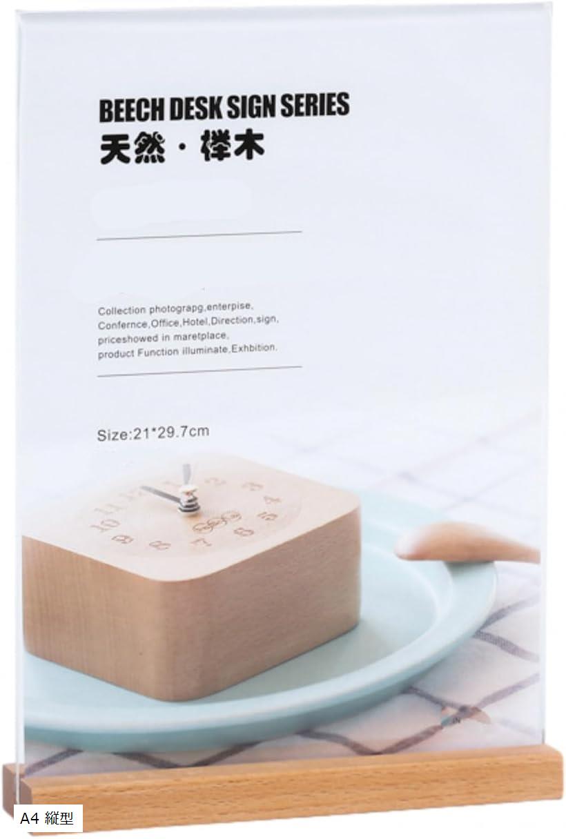 メニュースタンド サインホルダー POPスタンド フォトフレーム 料金表 透明アクリル T型 広告 写真 カード 木製 A4 縦型 (A4 縦型)