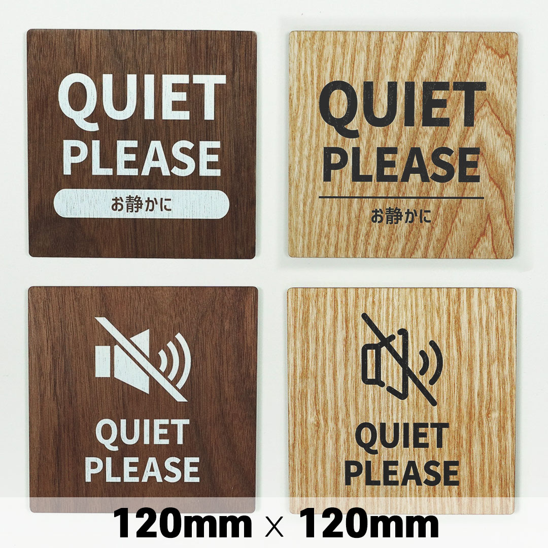 木製 サインプレート QUIET PLEASE お静かに 120×120mm ドアプレート ドアサイン ウッド 木製ドアプレート サイン プレート 表札 おしゃれ