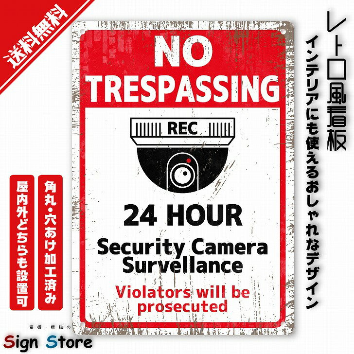 レトロ風 看板【NoTrespassing(立入禁止防犯カメラ作動中)】210×297mm 看板プレート サイン 日本 案内 サインプレート 看板標識 看板防止 注意 迷惑_A4-0B-07. 0b-a4-07