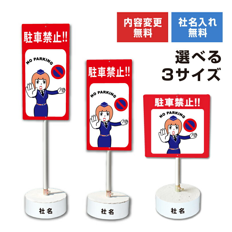 【内容変更可能 社名入り】 当店オリジナル まかせなサイン 両面広告 【 駐車禁止!! 】置き看板 スタンド看板 立て看板 屋外 会社 ビル マンション 駐車場 看板 サイン コンクリートブロック付き os-4-whiteblock