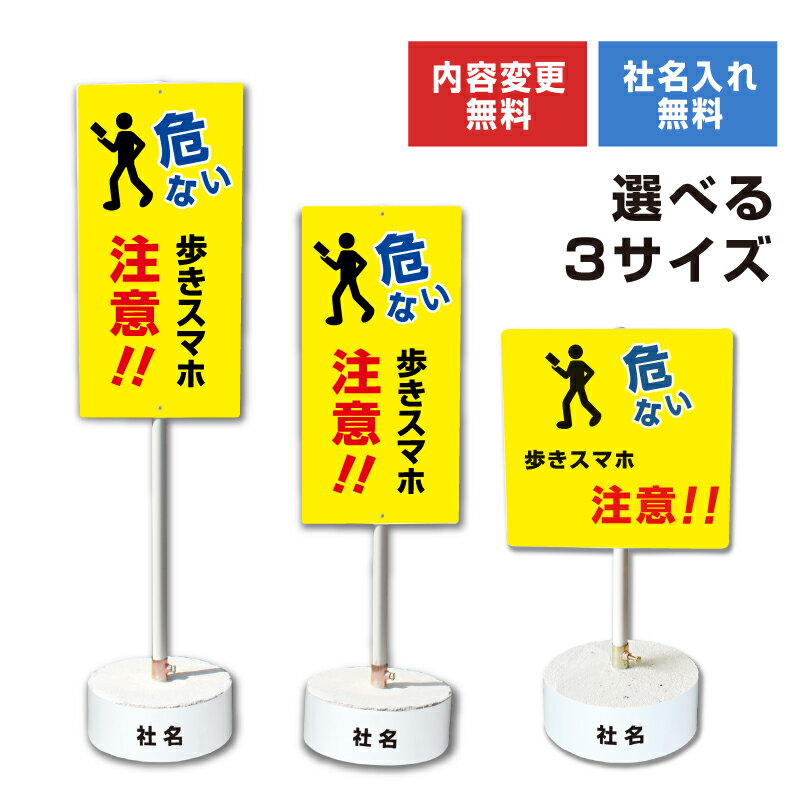 【内容変更可能 社名入り】 当店オリジナル まかせなサイン 両面広告 【 歩きスマホ注意!! 】置き看板 スタンド看板 立て看板 屋外 会社 ビル マンション 駐車場 看板 サイン コンクリートブロック付き os-41-whiteblock