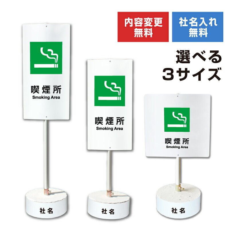【内容変更可能 社名入り】 当店オリジナル まかせなサイン 両面広告 【 喫煙エリア 】置き看板 スタンド看板 立て看板 屋外 会社 ビル マンション 駐車場 看板 サイン コンクリートブロック付き os-45-whiteblock