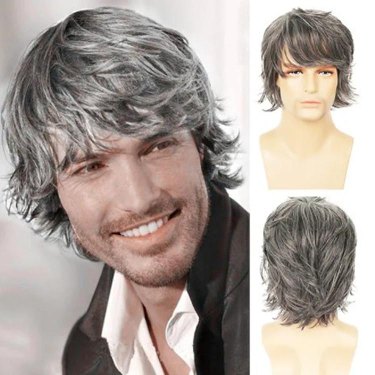 ウィッグ メンズ 男性用 巻き髪 ショートヘア ファッション 普段使い 金髪 黒髪 焦げ茶色 グレー