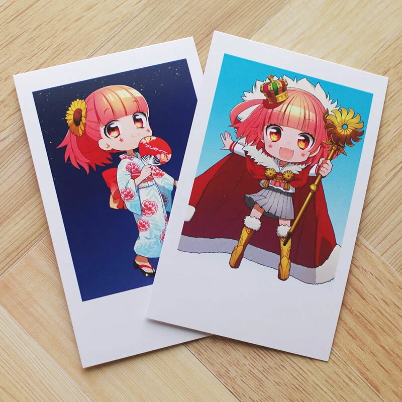 仕様 サイズ 2枚組:横100mm×縦150mm 用紙 アートポスト180kg 印刷 オフセット4色カラー(ノーマル4C) 加工 表面加工:PP加工 or マット加工 用紙:型抜き加工有り 締切日 月曜入稿 → 翌週金曜出荷 ※GW,7-8月,12月-1月のイベント前後は【印刷繁忙期】のため、納期が異なります。 オプション 袋詰め 1枚につき@22円 原稿について 締切を過ぎる場合は不備があっても原稿通りにて作業を進める事がありますので、早めのご入稿をお勧めします。 ‣ 原稿は指定のテンプレートに沿って作成してください。