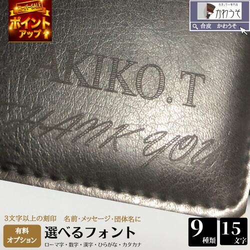 商品情報商品名かわうそdeネーム名入れオプション(レーザー刻印)・プチカスタマイズ・名入れオーダーメイド文字数最大15文字(記号、「」スペース含む選べるフォント英数のフォント(半角対応)1)【英数1】新聞2)【英数2】筆記体3)【英数3】太め4)【英数4】カジュアル5)【英数5】細め筆記体6)【英数6】細長ひらがな・カタカナ・漢字A)明朝B)ゴシックC)ポップ注意点●レーザー刻印のため色をつけて刻印は不可●ご入力いただいた文字をそのまま刻印します・下記のような事がないようにご注文時にお気を付けください「思った文字の形のイメージと異なっていた」「漢字対象のフォントではなかった」「筆記体の大文字だけを指定してバランスが思ったイメージと異なった」→フォントイメージや注意点をご確認いただきご注文をお願いします。\SALE 全品P5倍/ 名入れギフト オーダーメイド プレゼント レーザー刻印 贈り物 ノベルティー 1点から バインダー 書類ケース 選べるフォント15文字対応/漢字・平仮名・カタカナ 会社名 団体名 法人 さりげない刻印 【単体購入不可・有料オプション】/かわうそdeネーム 会社名 名前入り 名前入れ 贈り物 1点からカスタマイズ 名前刻印 小ロット メッセージ 1点もの オリジナル お祝い 自分用 ビジネス おしゃれ 記念品 39ショップ 【ご注文いただいた実例】こんな組み合わせも15文字以内であれば料金内で対応可能・メッセージ&名前・会社名&苗字・大文字と小文字の組みあわせ※1文字〜15文字までの刻印※段落・フォントが同じ場合※2段フォントを変更する場合は別料金※前面右下のみ対応 7