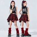 【送料無料】女の子 ミニスカート トップス チェック柄 袖なし ダンス衣装 ヒップホップ セットアップ(トップス+スカート) 衣装 ダンス