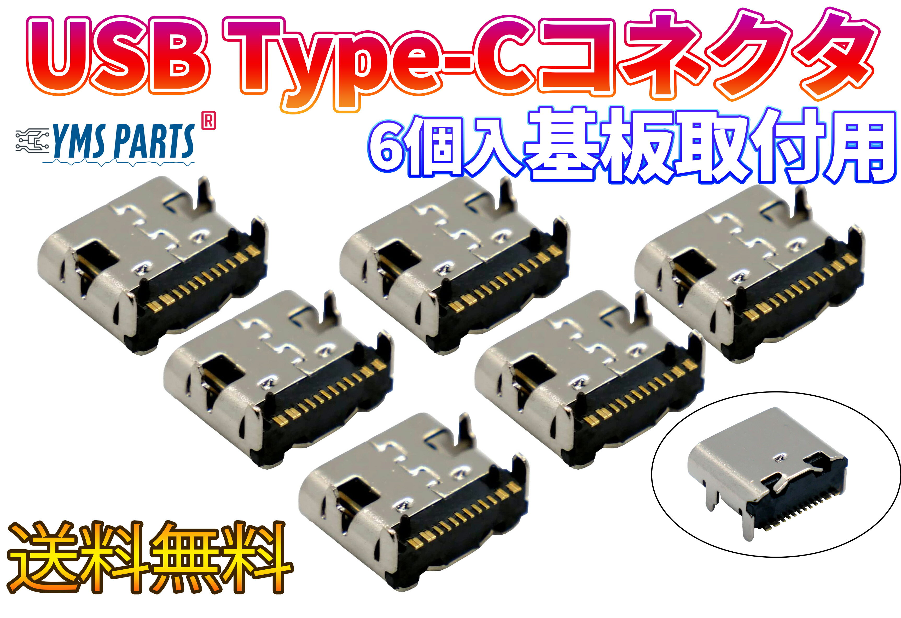 【6個入】USB Type-Cコネクタ 基板取付用 補修や修理に YMS PARTS