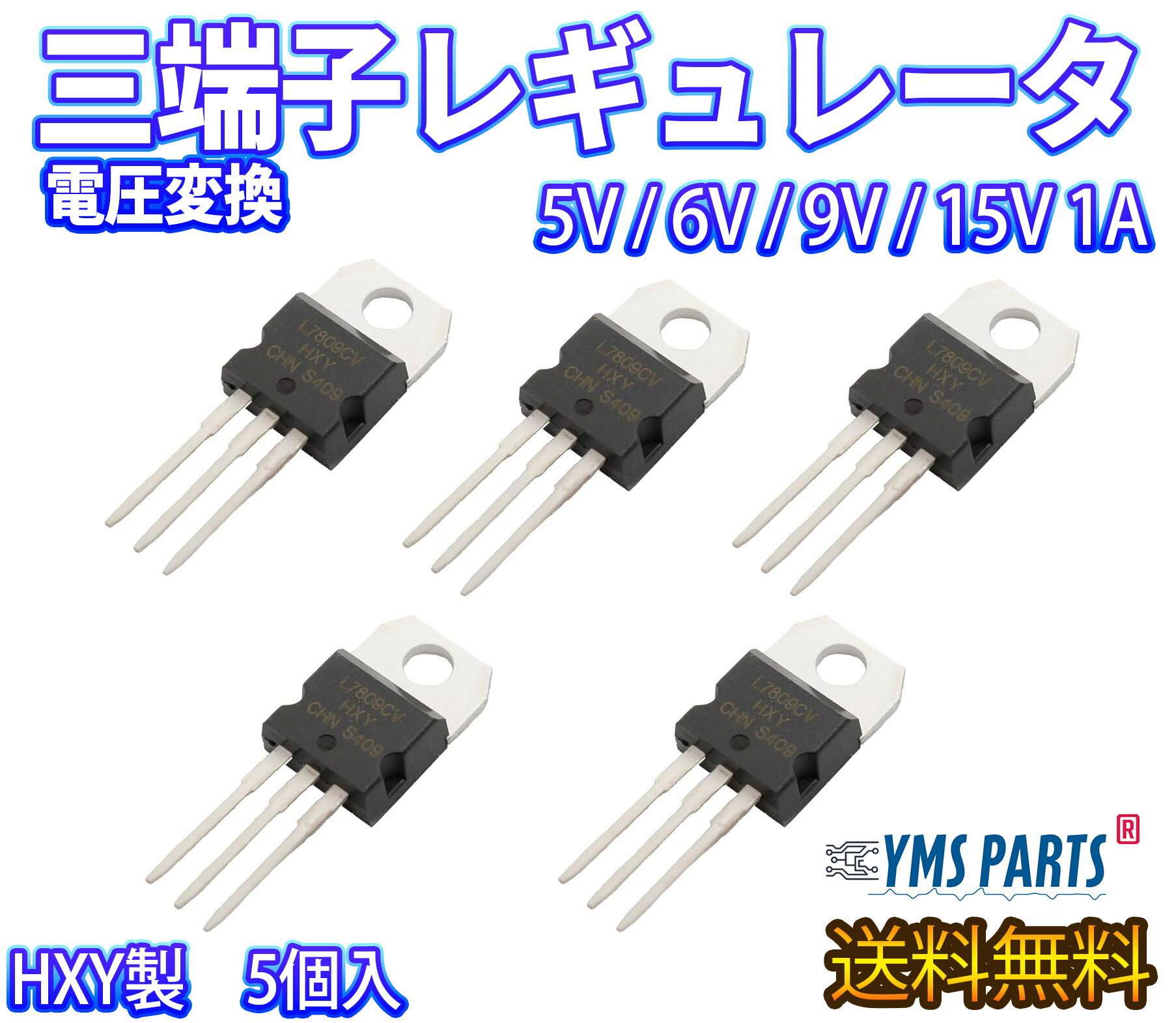 【5個入】HXY製 三端子 降圧 変換 定電圧 レギュレーター 5V~15V 1A(出力電圧は選択肢からお選びください) YMS PARTS