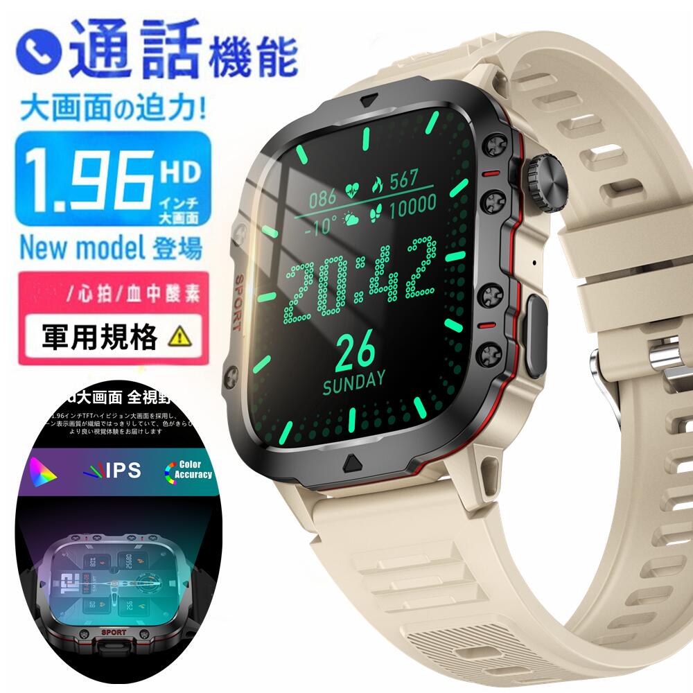 【軍用規格 通話機能 工場直営 品質保証 】SOS 420mAh 長時間待機 1.96インチ大画面 通話機能付き 多機能健康管理 HD超大画面タッチスクリーン スマートウォッチ 心拍計 歩数計 血中酸素 GPS連携 レディース メンズ 腕時計 iphone 対応 android 対応