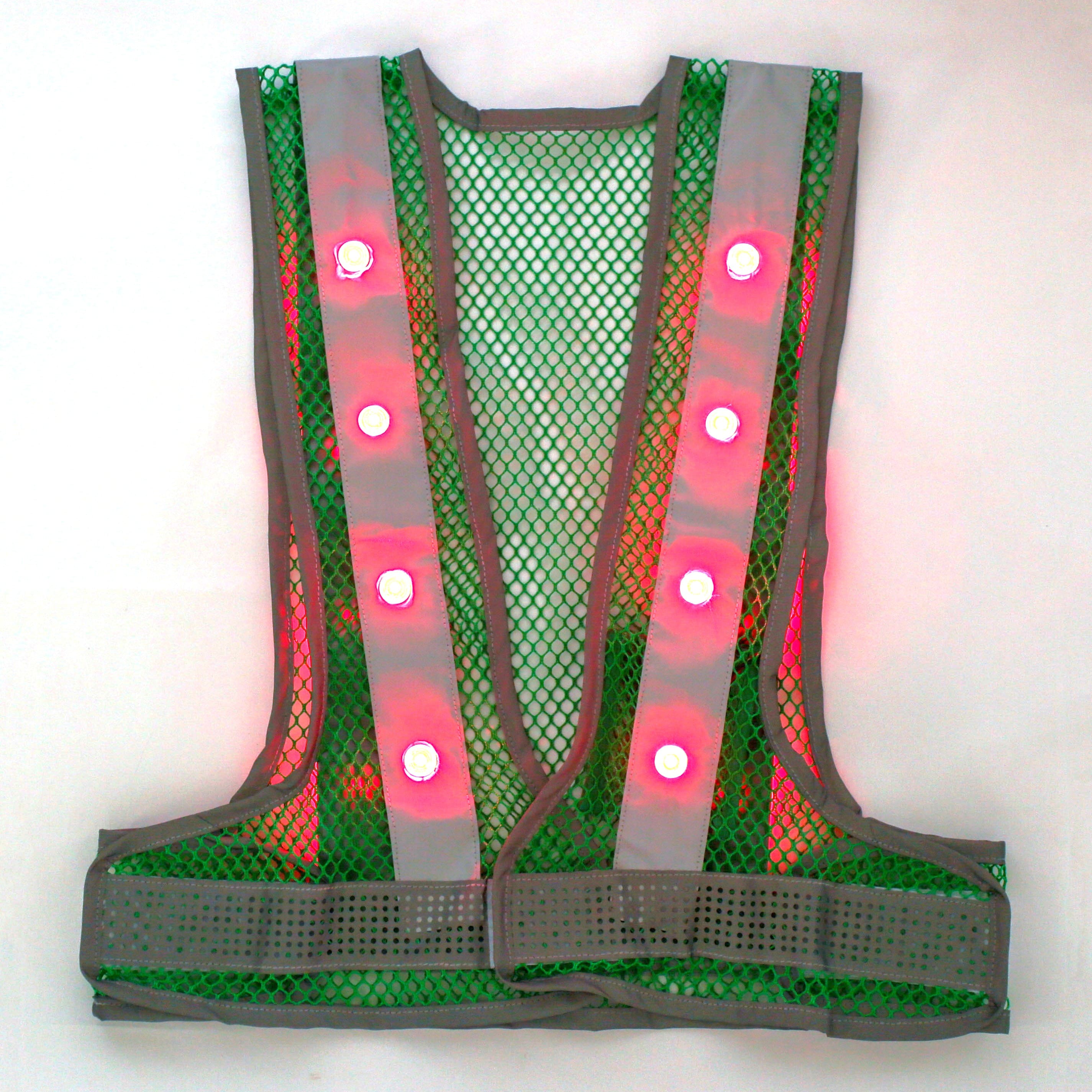 メッシュの粗いLEDベスト「LEDアラベス」赤色LED(R)・ピンク×シルバー 1着 MBL-LED-PS-R-1 | 安全用品 電池 安全 ベスト 作業用ベスト 光る 夜間工事 夜間 保護具 安全チョッキ 作業着 作業服 工事現場 led チョッキ メッシュ セーフティベスト