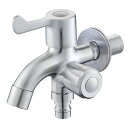 二股蛇口 ステンレス製 双口 洗濯機用水栓 シングルレバー 2口 分岐栓 分岐付き 交換 双頭 水道栓 標準G1/2接続ホース付き 二口横水栓 表面処理 耐食性 洗濯/お風呂/洗面所/浴室/キッチン/ベランダ/ガーデン/屋外用