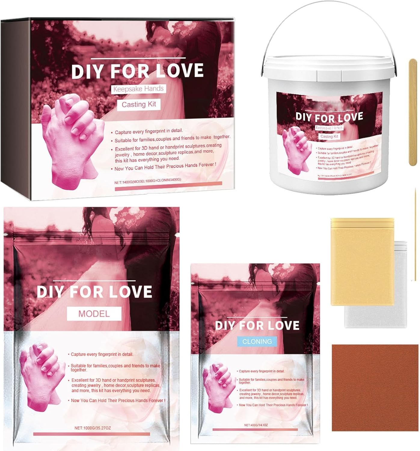 ファミリー ハンズ キャスティング キット - ハンド キャスティング キット カップル |バレンタインデーハンドキャスティングパウダー、 ハンドモデルクラフト、バレンタインデーの装飾、手をつなぐキャスティング記念品