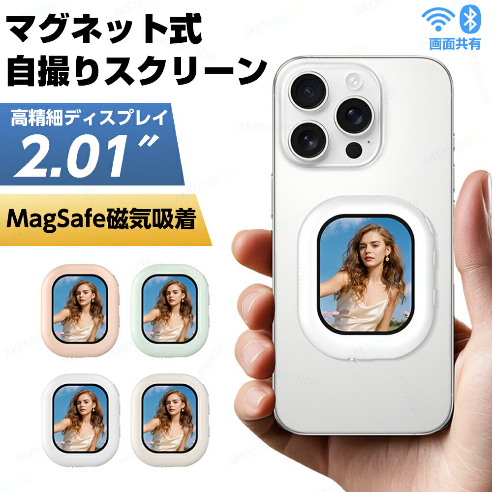 自撮りモニター 自撮りスクリーン スマホ 背面モニター 磁気吸着式 MagSafe対応 自撮り補助 スクリーン 自撮り用 背面スクリーン 撮影用 背面カメラ スマホ自撮りモニター Vlog記録 ビデオ録画 ライブ配信 iPhone/android対応