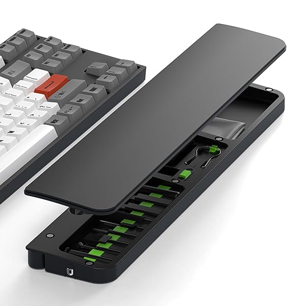 リストレスト パームレスト キーボード用 大型 Wrist Rest 低反発クッション 疲労軽減 多機能 リストレスト 手首置き 腱鞘炎予防 1台で2役 22-in-1クリーニングキット キーボード掃除道具 スマホ、ヘッドホン掃除 クリーニング ゲーミングキーボード アームレストブランド色ブラックモデル商品説明【商品概要】[新設計 1台で2役]タイピング時の疲労を軽減できるリパームレストでありながら、キーボード、スマホ、ヘッドホンなど様々なデバイスのクリーニングにも活用する22-in-1クリーニングキットに早変わりします。[快適に作業]手触りの良いレザー調のPU素材と適度な弾力のスポンジの組み合わせで、8-10時間連続作業でも、手首をソフトにガードして、細やかな質感で快適な作業を実現します。傾斜設計で入力時の机との段差を軽減し、手首の疲れや肩こり、腱鞘炎予防に効果があるリストレストです。[安定に作業]パームレストはマグネット付きデザインで蓋とベースをしっかり固定して、開閉も簡単に扱います。裏面には12か所に滑り止めのゴムが付いて、ゲーム中の激しい動きでも非常に安定です。[クリーニングながらりレスト]22-in-1クリーニングキットは多彩なツールが収録され、キーボード・スマホ・ヘッドホンなど様々なデバイスの細部まで徹底清掃可能!専用ツールをすぐお手入れ、たまったストレスを解消しながら、愛用デバイスを新品同然に蘇らせましょう![耐久性強い]しっかりしたプラスチックのベースと高品質のPU素材の表面、汚れても簡単に拭き取れ、長時間の使用に役立っています。おしゃれで人気のギフトで、彼氏や父親へのプレゼントに最適です。ご注意:付属品のボトルは空ボ卜ルです。自分で洗浄液を追加する必要があります。【商品説明】リストレスト & 22-in-1クリーニングキット【商品詳細】商品種別:リストレスト商品名:リストレスト パームレスト キーボード用 大型 Wrist Rest 低反発クッション 疲労軽減 多機能 リストレスト 手首置き 腱鞘炎予防 1台で2役 22-in-1クリーニングキット キーボード掃除道具 スマホ、ヘッドホン掃除 クリーニング ゲーミングキーボード アームレスト製造元:商品番号:色:ブラック【当店からの連絡】