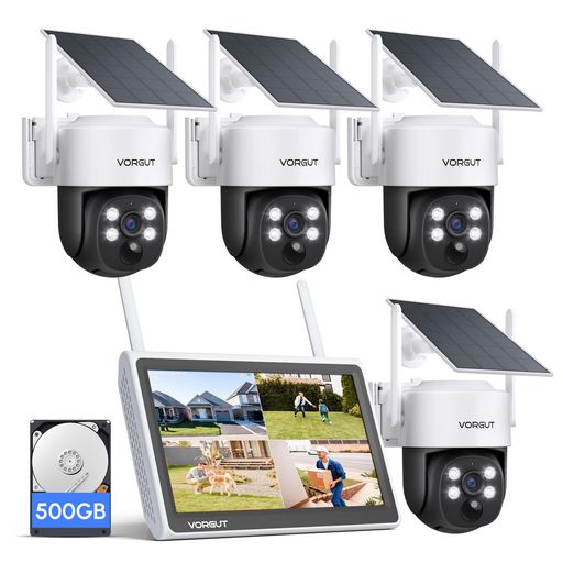 VORGUT防犯カメラ屋外ソーラーモニター付き4台セット監視カメラソーラー電源不要防犯カメラワイヤレス屋外無線PIR人体検知声光威嚇双方向通話2.4G&5G対応5年保証(400万画素カメラ4台+10インチ