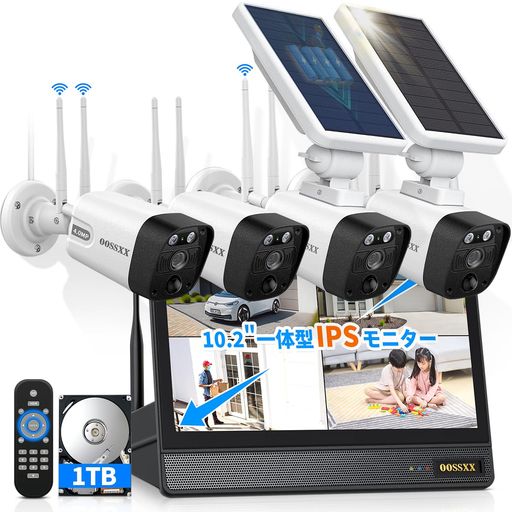 【ソーラーパネル充電・双方向通話】OOSSXXワイヤレスモニター付き防犯カメラソーラー屋外ソーラーパネル充電監視カメラソーラー監視カメラネットワークカメラ電池式カメラソーラーラ…