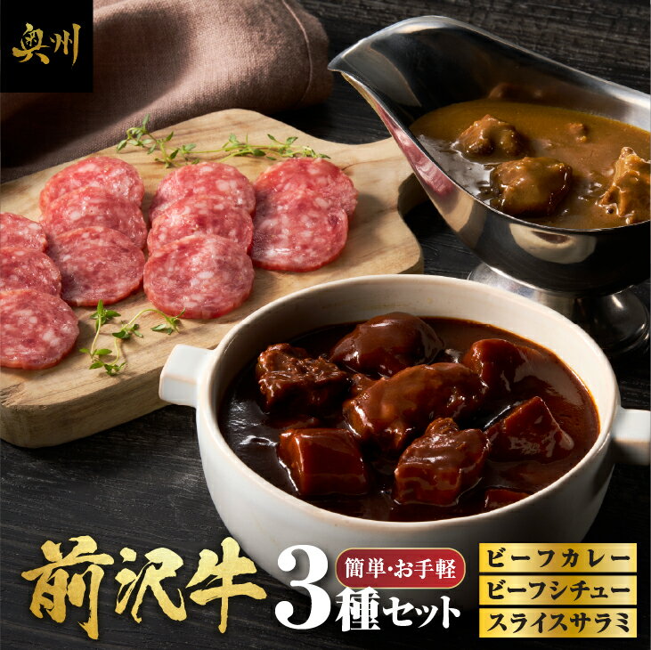 【ふるさと納税】 前沢牛 ビーフカレー ビーフシチュー スライスサラミ 各1個 お手軽 セット レトルト 詰め合わせ カレー シチュー サラミ 前沢牛 ブランド牛 牛 肉 おかず グルメ 常備品 一人暮らし [ME015]