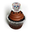 Dia De Los Muertos シュガースカル スケルトン デイ・オブ・ザ・デッド ハロウィン 1.5インチ ウエハースペーパートッパー デザートデコレーション用 24個パック Deco Machine Dia De Los Muertos Sugar Skull Skeleton Day of The Dead Halloween