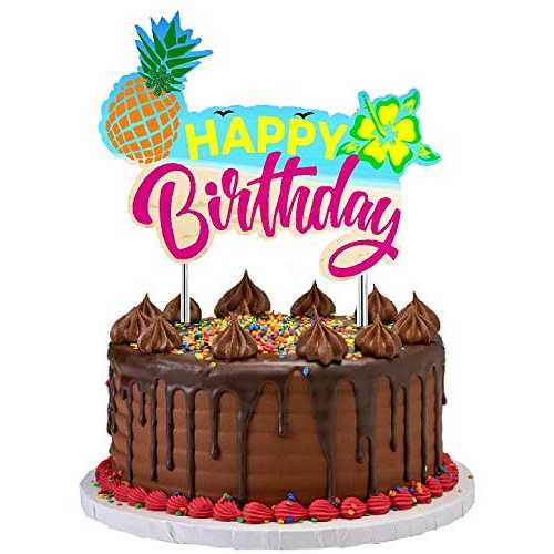 LeeSky Flamingo Happy Birthday Cake Topper and Pineapple Coconut Tree Tropical Hawaii Cupcake Toppers for Tropical Hawaii Flamingo Theme Birthday Party Supplies - 25Pcs