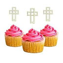 イースタークロス初聖体カップケーキトッパーカードストックカラー12個パックデコレーションホワイト Picwrap Easter Cross first communion Cupcake Topper card stock Color 12 pc Pack Decoration White