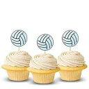 バレーボールカップケーキトッパーデコレーショングリッターカードストックカラー黒と白、12個 Picwrap Volleyball Cup Cake Topper Decoration Glitter Card Stock Color Black and White, 12 PC
