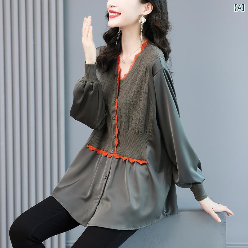 シャツ レディース 秋 ウール Vネック トップス レディース 豪華感 エレガント ブラウス スカンジナビア