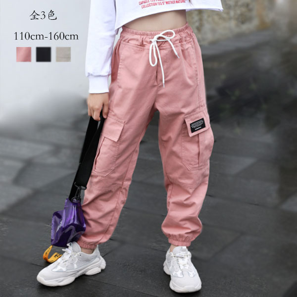 【15%OFFクーポン】子供服 カーゴパンツ ガールズ イージーパンツ シンプルパンツ 女の子 カジュアルパンツ カーゴパンツ ブラック ピンク ページュ 運動着 キッズ お出かけ ボトムス パンツ 通学着 春 夏 秋 ダンス 衣装 パンツ 舞台 団体服 応援団 110 120 130 140 150 160
