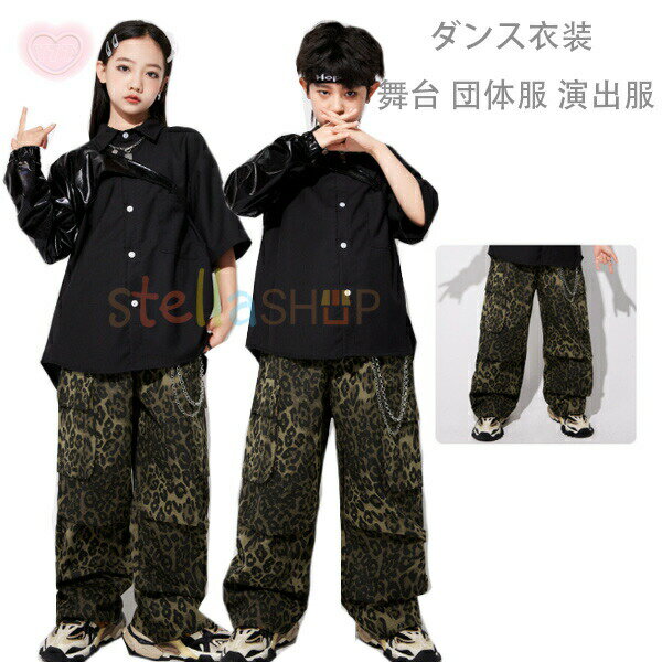 ダンス 衣装 キッズ 韓国 男の子 女の子 男女兼用 トップス パンツ ヒップホップ HIPHOP 派手 ジャズダンス 練習着 演出服 舞台服 発表会 団体服 演奏会