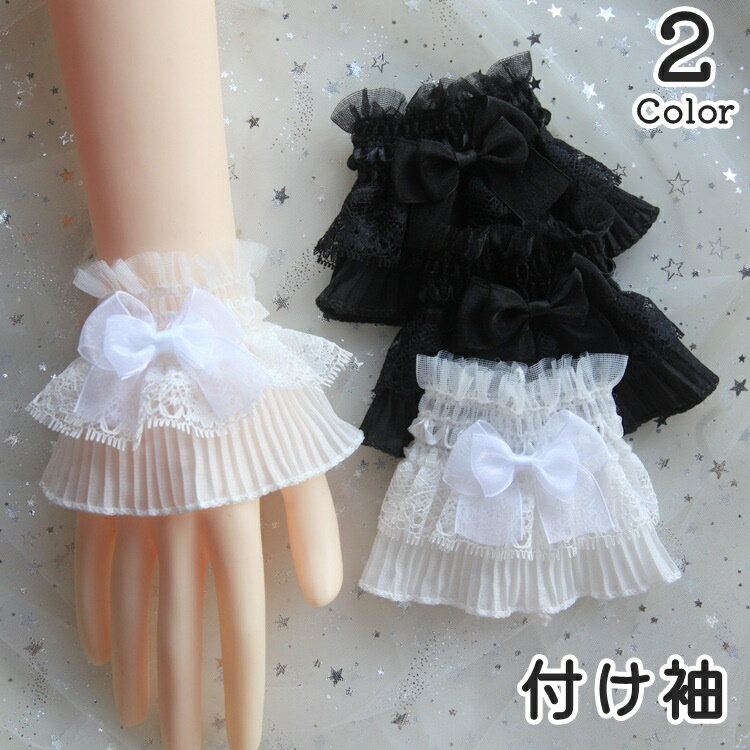 送料無料 付け袖 つけそで ペア 2個セット レディース 女性 ファッション小物 レース リボン フリル 透け感 シースルー 重ね着 レイヤード 装飾 飾り アクセント お出かけ フェミニン おしゃれ かわいい ブラック ホワイト 黒 白