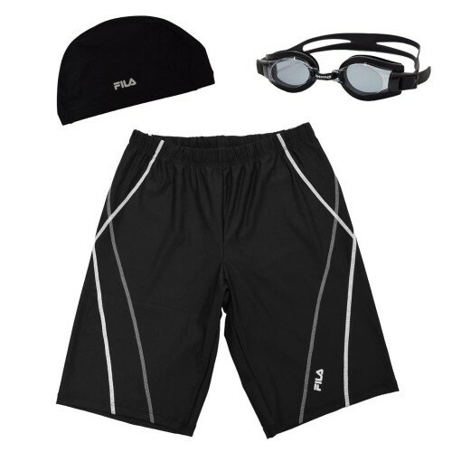 フィラ メンズ フィットネス水着 スイムキャップ スワンズ スイムゴーグル 3点セット 438901set (M, ブラックグレー(BGY))