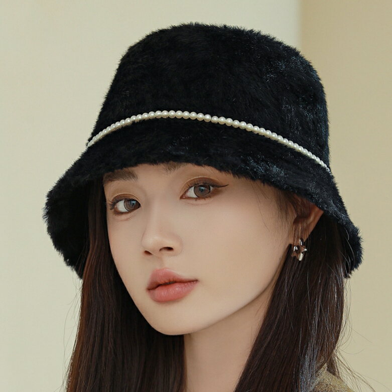 レディース 帽子 バケットハット ファー ハット パール付き デザイン 小顔効果 防寒 保温 あったか ふわふわ 柔らか素材 上品 かわいい 大人可愛い フェミニン きれいめ カジュアル 韓国ファッション ブラック オフホワイト ベージュ カーキ キャメル グレー 秋冬[K](T)