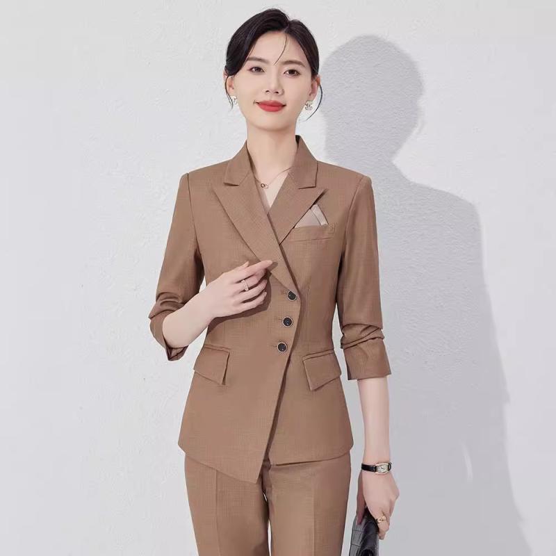 スーツ レディース 秋冬 セットアップ ジャケット アウター ホテル フロント 受付 制服 ビジネス オフィス 仕事着 通勤 正装 フォーマル 上品 エレガント きれいめ ポリエステル 綿 再生繊維 ブラック グレー カーキ ワインレッド