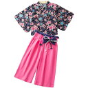 [SLINX]浴衣子供女の子ガールズベビーキッズ夏祭り和装ゆかたこどもゆかた2点セット和柄浴衣セット袴風上下セット袴子供着物ひな祭りお正月花火大会HF166(ネイビー90)