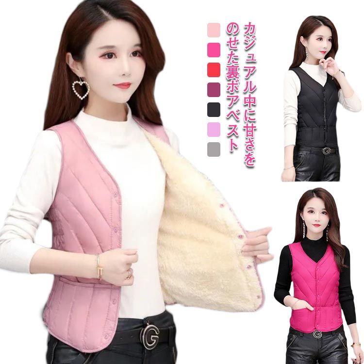 カジュアル中に甘さをのせた裏ボアベスト内側はふわふわのボア裏地なのでふんわりあったか肌触りの良い素材で寒い時期でも暖かく防寒!軽くて柔らかい着心地で、お出かけや室内での防寒対策など幅広く活躍してくれるアイテムです通勤など普段使いはもちろん、スキー、スノボなどのウィンタースポーツや、遊園地やスポーツ観戦などのアウトドア活動におすすめです サイズ S M L XL 2XL 3XL 4XL 5XL サイズについての説明 S バスト71-81 肩幅31着丈50おすすめ体重30-43kgM バスト74-84 肩幅32着丈51おすすめ体重43-48kgL バスト78-88 肩幅33着丈52おすすめ体重48-53kgXL バスト82-94 肩幅34着丈53おすすめ体重53-58kg2XLバスト86-100肩幅35着丈54おすすめ体重58-63kg3XLバスト90-106肩幅36着丈55おすすめ体重63-68kg4XLバスト94-110肩幅37着丈56おすすめ体重68-74kg5XLバスト98-114肩幅38着丈57おすすめ体重74-80kg※サイズは平置き実寸になります。サイズ表の実寸法は商品によって1-3cm程度の誤差がある場合がございます 素材 ポリエステル 色 パープル グレー ピンク ブラック ダークパープル レッド バラ色 備考 ●サイズ詳細等の測り方はスタッフ間で統一、徹底はしておりますが、実寸は商品によって若干の誤差(1cm〜3cm )がある場合がございますので、予めご了承ください。 ●製造ロットにより、細部形状の違いや、同色でも色味に多少の誤差が生じます。 ●パッケージは改良のため予告なく仕様を変更する場合があります。 ▼商品の色は、撮影時の光や、お客様のモニターの色具合などにより、実際の商品と異なる場合がございます。あらかじめ、ご了承ください。 ▼生地の特性上、やや匂いが強く感じられるものもございます。数日のご使用や陰干しなどで気になる匂いはほとんど感じられなくなります。 ▼同じ商品でも生産時期により形やサイズ、カラーに多少の誤差が生じる場合もございます。 ▼他店舗でも在庫を共有して販売をしている為、受注後欠品となる場合もございます。予め、ご了承お願い申し上げます。 ▼出荷前に全て検品を行っておりますが、万が一商品に不具合があった場合は、お問い合わせフォームまたはメールよりご連絡頂けます様お願い申し上げます。速やかに対応致しますのでご安心ください。