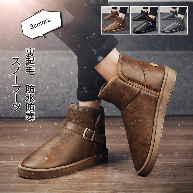 スノーブーツ メンズ ショートブーツ ベルト付き 厚手 裏起毛 シューズ 靴 カジュアル 防水 防寒 防滑 暖かい 歩きやすい 履きやすい 秋冬 おしゃれ