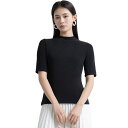 [EnjoIt]Tシャツ半袖レディースコットンハイネックハーフスリーブタートルネックtシャツカットソー夏無地五分袖白おしゃれカジュアルスリムフィット着瘦せコーディネートしやすいF0059