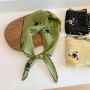 スカーフ レディース 三角巾 春夏 韓国 ファッション おしゃれ ストール バッグ飾り ポリエステル 抹茶グリーン系 クリーム ブラック 刺繍