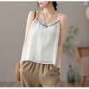 キャミソール レディース トップス カジュアル おしゃれ 中華風 文学 レトロ 綿 リネン 女性 薄手 ベスト 夏 ノースリーブインナー 綿 リネン サスペンダー
