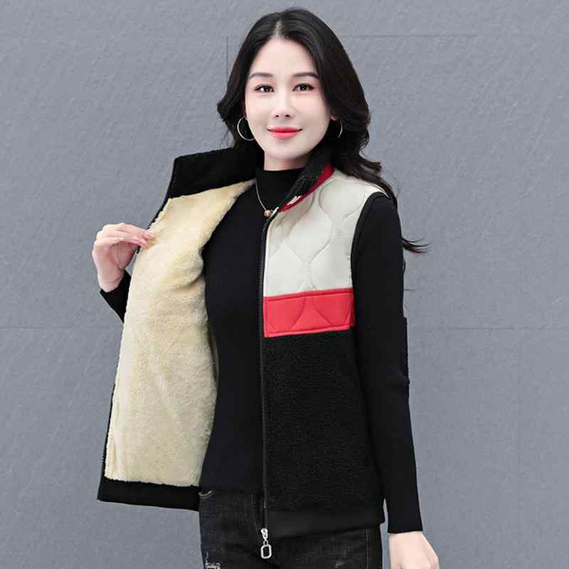 ベスト レディース 秋冬 女性用 ボア フリース あったか ママ 防寒 配色 スタンドカラー ジップアップ チョッキ 普段使い デイリー