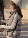 ベスト レディース 秋冬 ショート丈 中綿ベスト 立襟 無地 ポケット付き 韓国 カジュアル アウター 羽織り 着痩せ 体型カバー ベージュ ブラック系