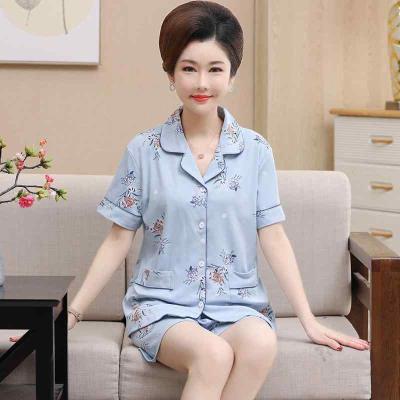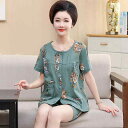 ・カテゴリ: セットアップ・主な素材: 綿 90-95%・厚さ: 薄手・ネックライン: 襟付き・袖丈: 3分袖・パンツ丈: ショートパンツ・用途: 部屋着・対象: ミドルエイジ女性・サイズ展開: M, L, XL, 2XL, 3XL・スタイル: 豪華高貴