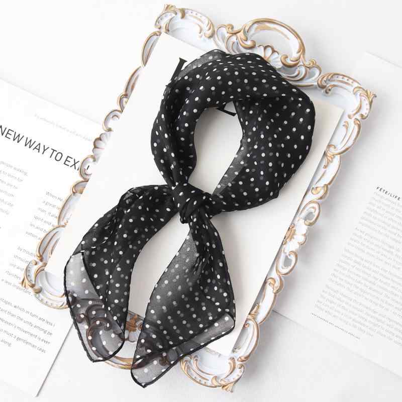 2スカーフ レディース 春秋 正方形 雪纺 波ドット柄 レトロ 個性的 70桑蚕丝 百搭 领巾
