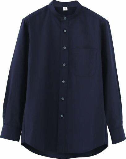 [セブンユニフォーム]GH7018-1ネイビーLL長袖シャツスタンドカラーシャツブロード制服飲食店男女兼用