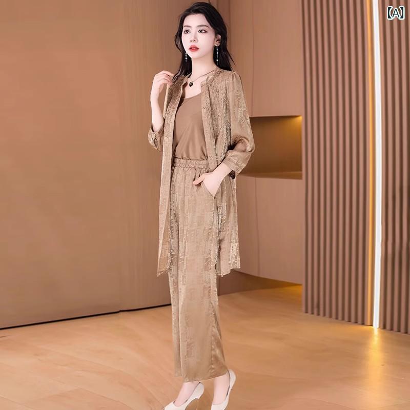 レディース ファッション 3点 スーツ 春秋 おしゃれ ブロード セットアップ エレガント 豪華感 洋風